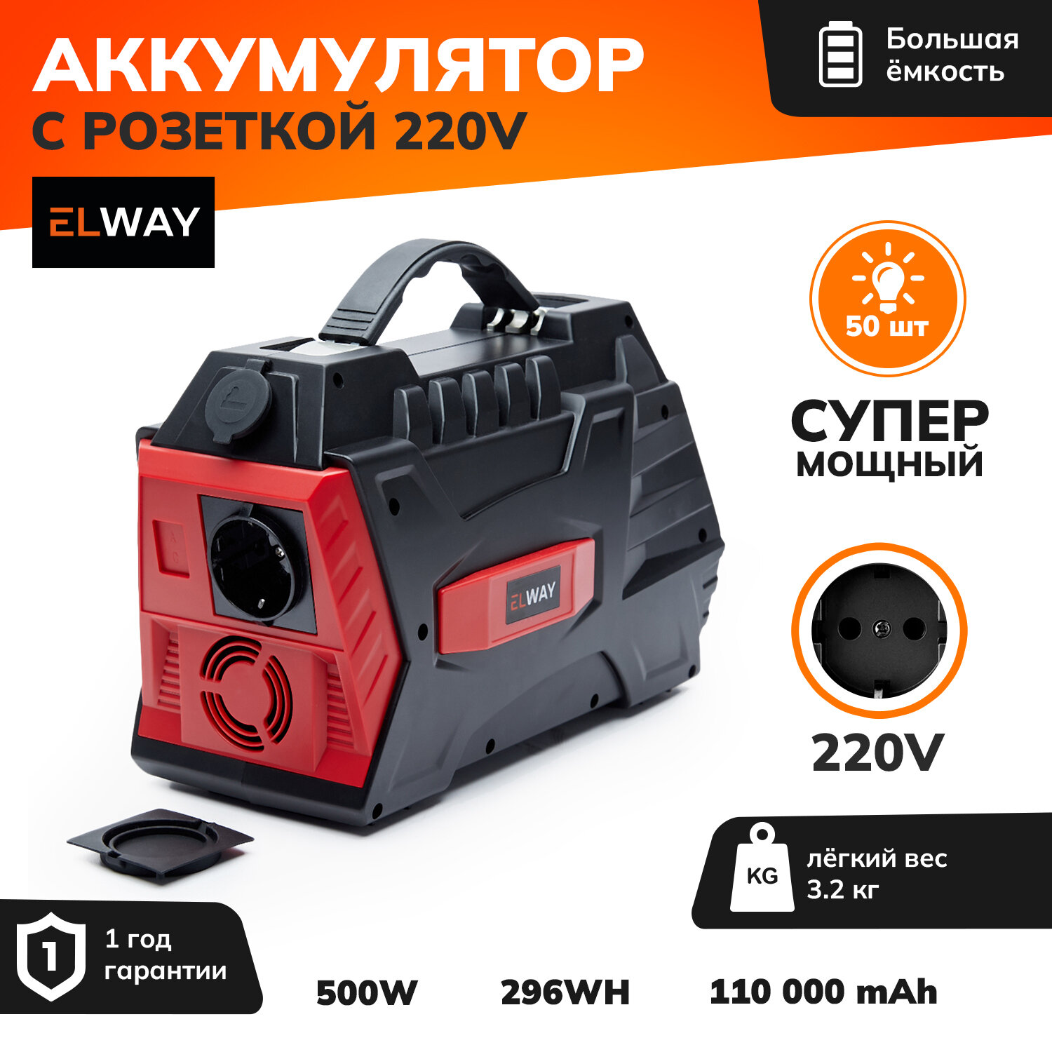 Портативный аккумулятор Elway Energy Box E05 - 500w с розеткой 220В 110 000mAh информация:
