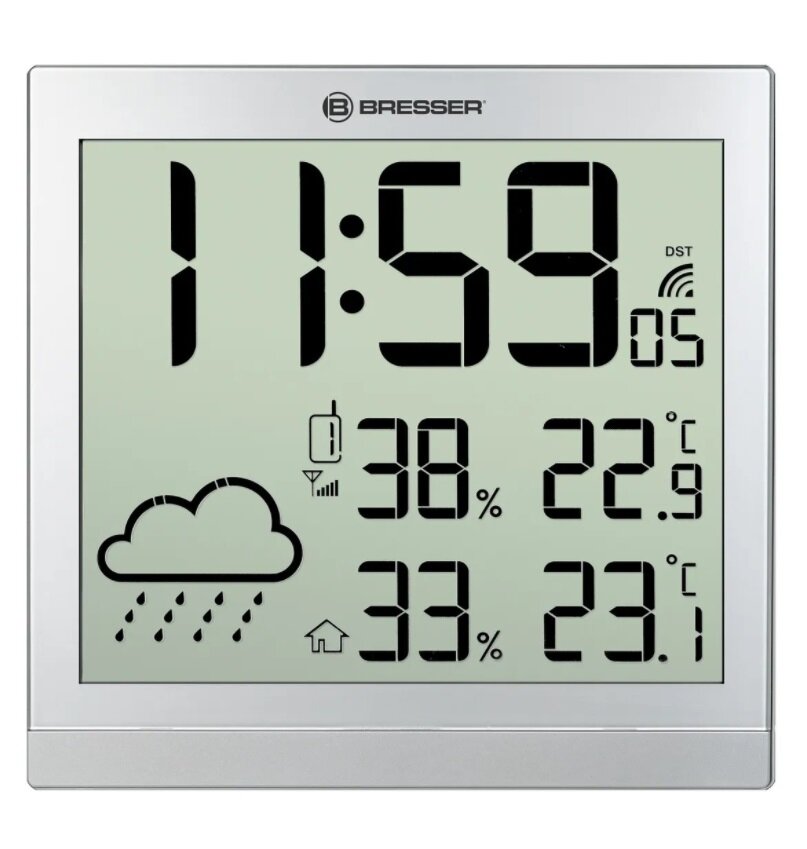 BRESSER метеостанция ClimaTemp JC LCD Настенные часы - серебристая информация: