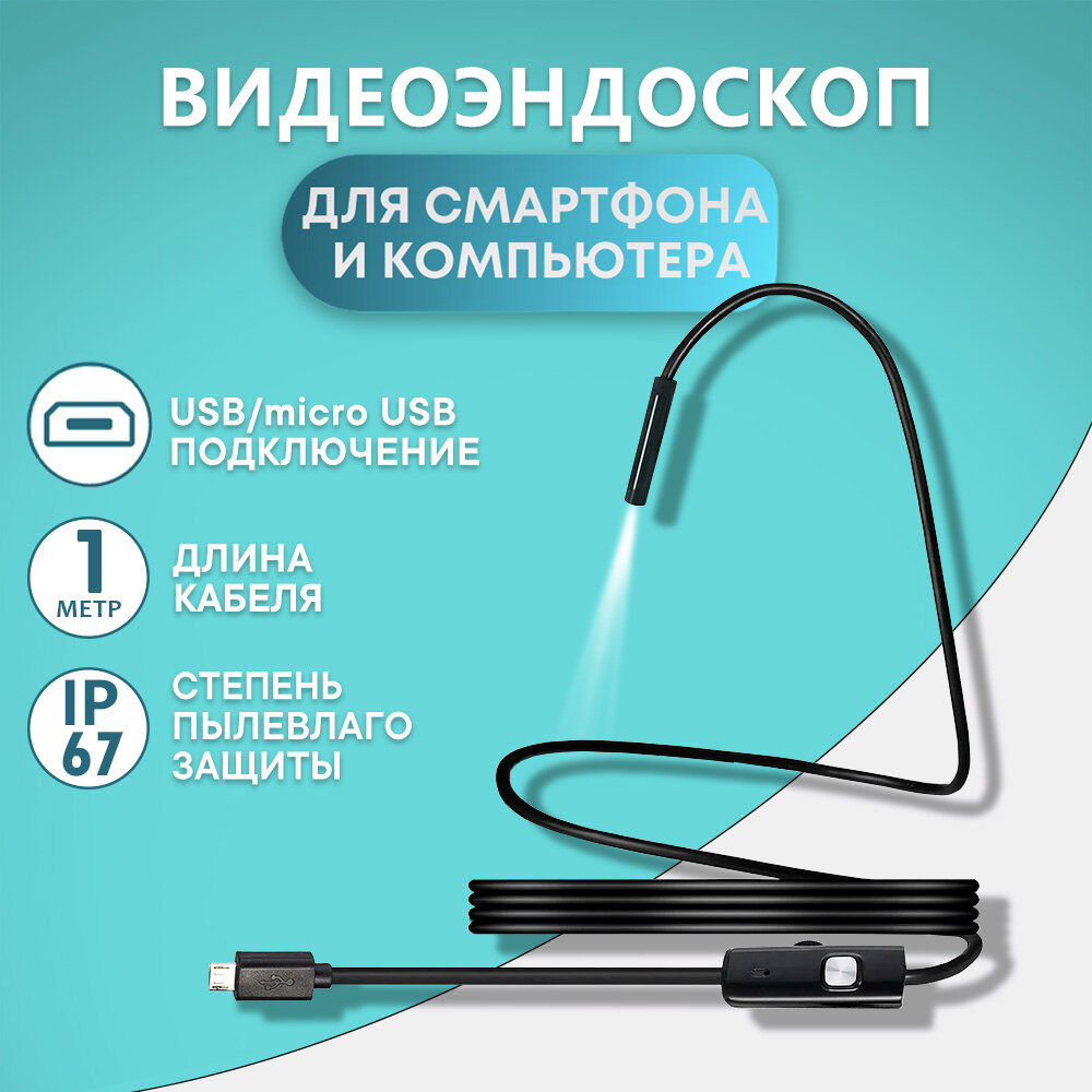 Эндоскоп для смартфона Андроид и компьютера водонепроницаемый InnoZone 720P 7мм гибкая камера, подсветка, длина 1м, для автомобиля и бытовых нужд информация: