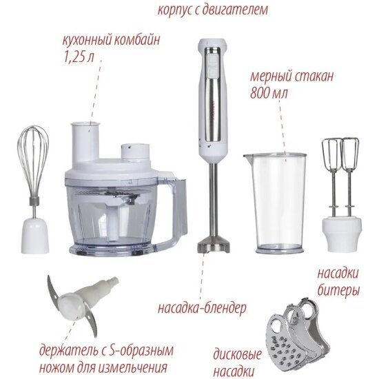 | Насадки | венчик для взбивания / измельчитель / терка |