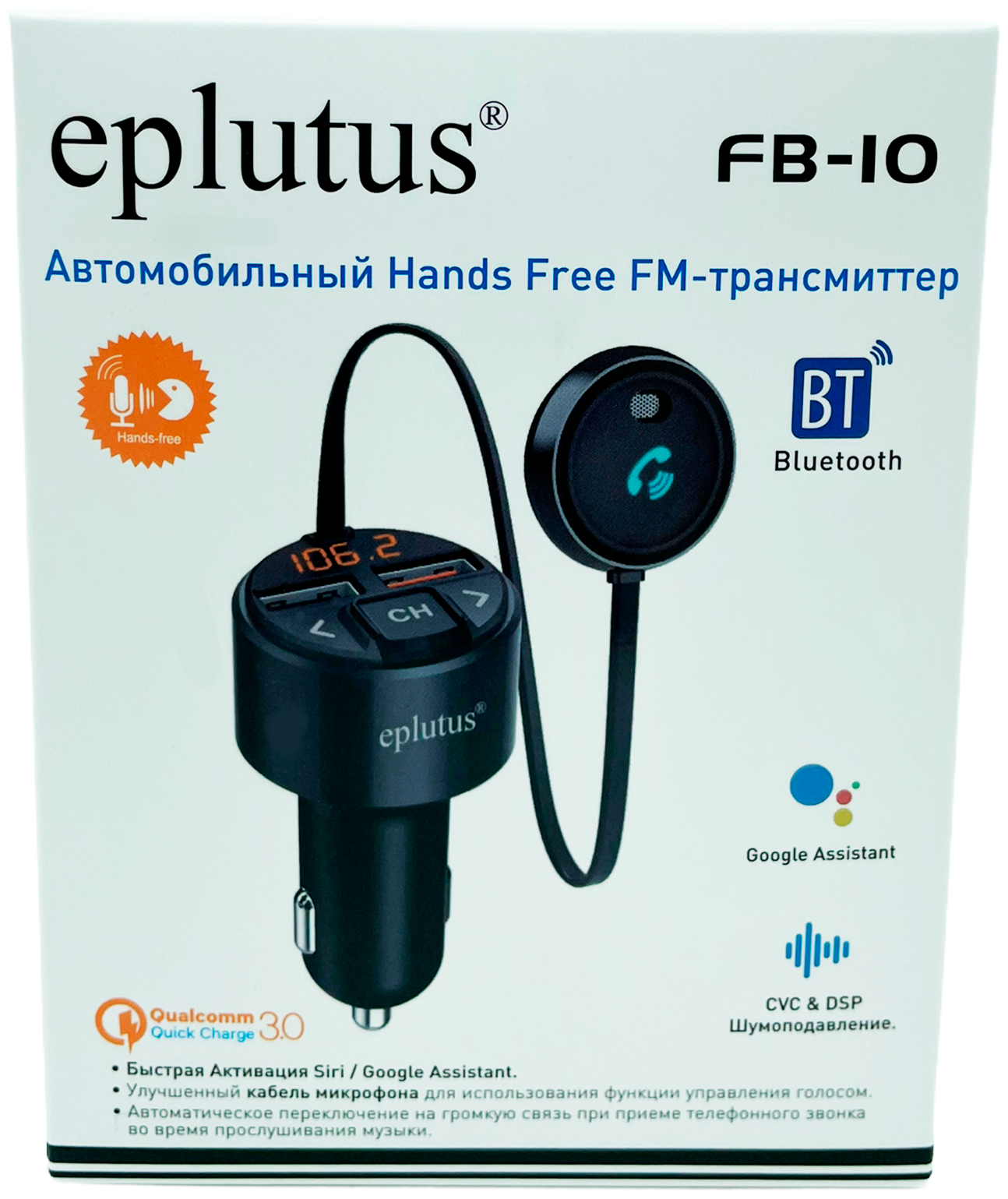 Автомобильный FM модулятор Eplutus FB-10 с голосовым помощником