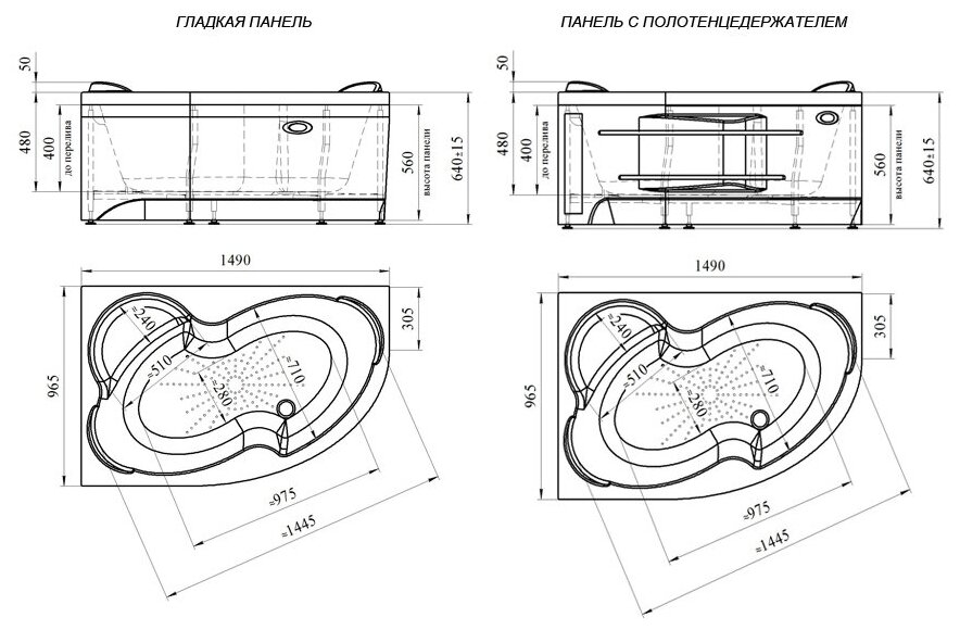 Акриловая ванна Радомир "Ирма" 160х105х66 см, левосторонняя, ванна + каркас + фронтальная панель гладкая