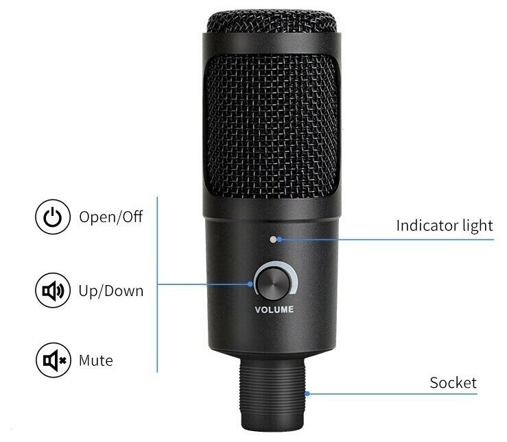 USB емкостная мини-микрофонная стойка для ПК, ноутбука, проводное записывающее устройство