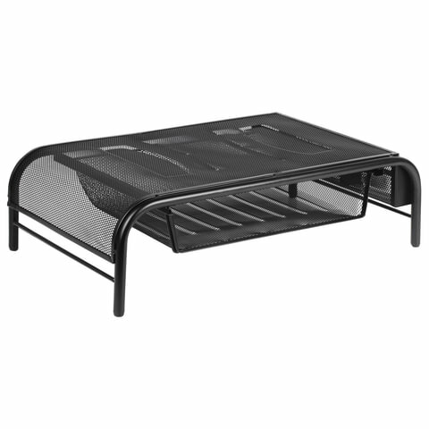 Подставка для принтера, монитора и ноутбука металлическая, 1 полка и 2 отделения, 50,5x30x14,5 см, Brauberg, черная, 512611