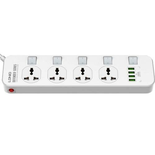 Сетевой фильтр LDNIO SC4408/ 2м/ 4 роз. EU_UK_US/ 2500W/ 4 USB/ Выключатели на роз./ белый
