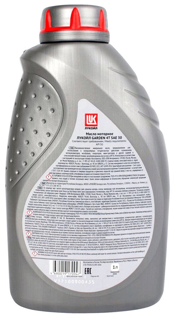 4T GARDEN SAE 30 Лукойл 1л. мин. API SG Масло моторное /кор.12шт./ LUKOIL 1668254 | цена за 1 шт