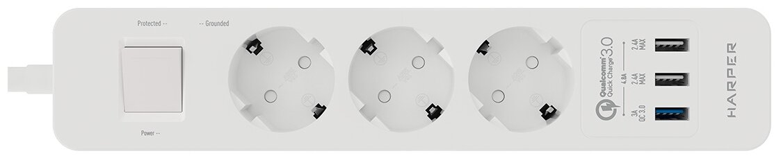 Сетевой фильтр Harper Белый, 3 розетки, 1,5 м, 4000 Вт, 16 A, 3хUSB (HARPER UCH-340 White QC3.0) 5 637 ₽