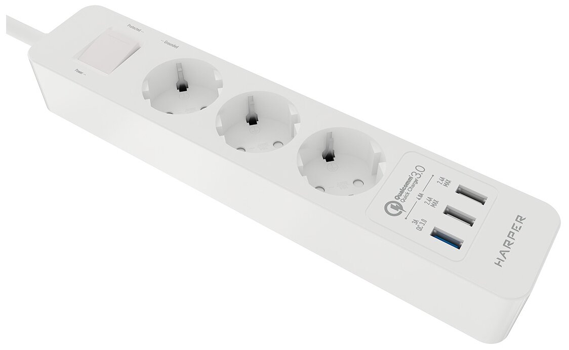 Удлинитель HARPER UCH-340 White QC3.0 Роз.3шт/1.5м/4000W/16A/3xUSB 5 015 ₽