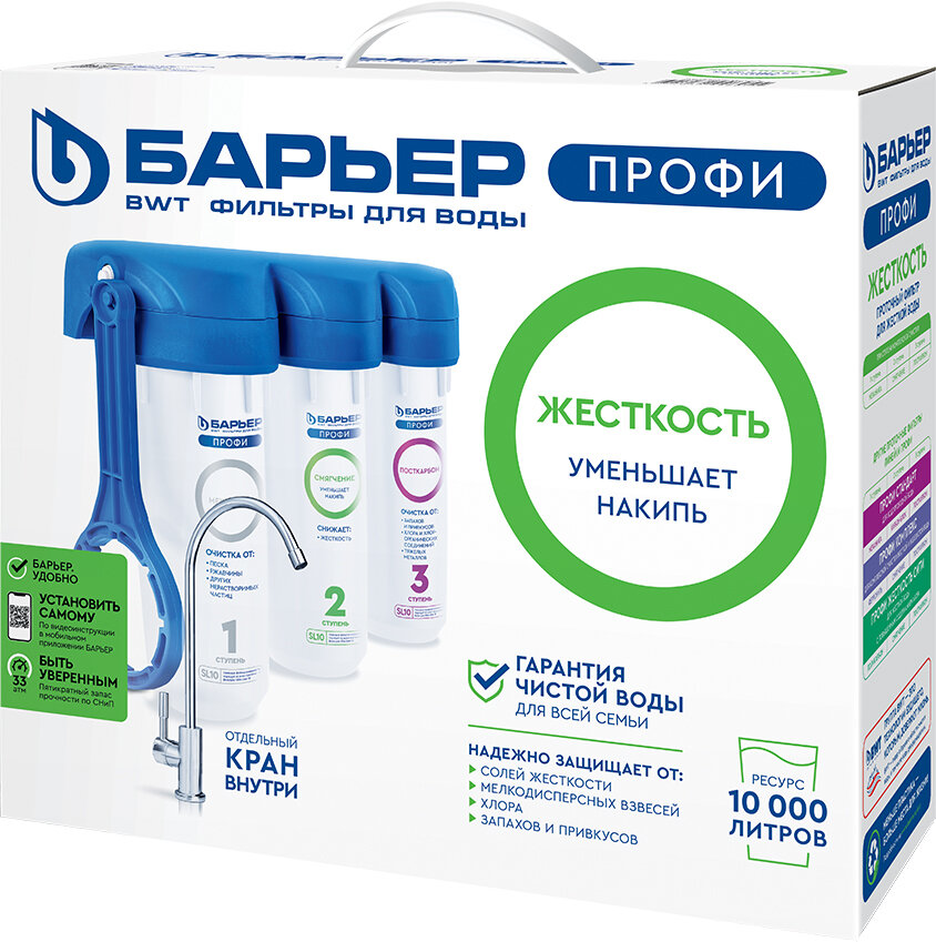 Фильтр для воды Барьер Профи Жесткость трехступенчатый проточный с краном 5 мкм 10SL