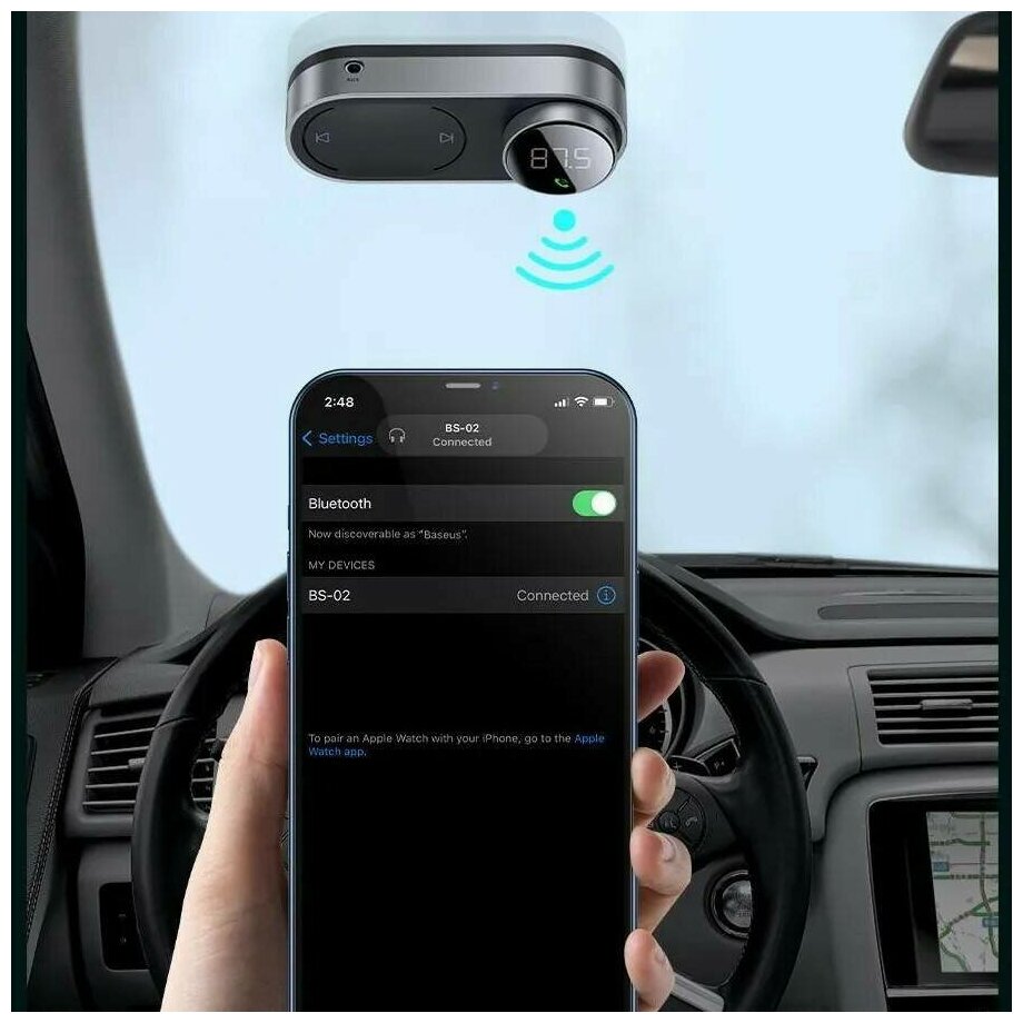 FM-трансмиттер Baseus с функцией быстрой зарядки и USB-портом, Bluetooth 5.0