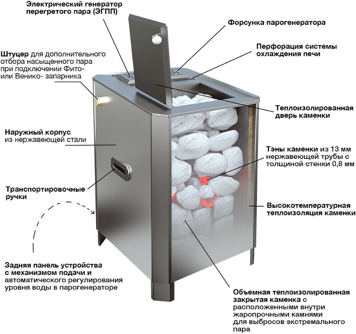Инжкомцентр ВВД Электрическая паротермальная печь ПАРиЖАР 24 кВт/380 В, облицовка из природного камня Талькохлорит