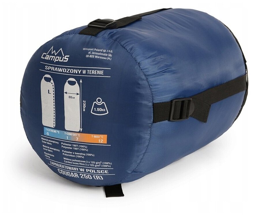 Спальный мешок Campus COUGAR 250 R-zip (одеяло+подголовник, +2°С) информация: