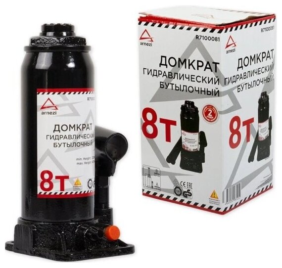 Отзывы на Домкрат гидравлический бутылочный 8т 230-457мм ARNEZI R7100081