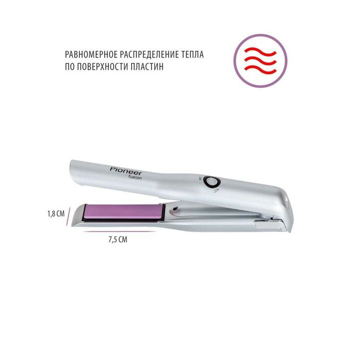 Беспроводной дорожный выпрямитель для волос Pioneer HS-1008R с керамическими пластинами 7,5x1,8 см, 3 режима нагрева, 25 Вт 1 190 ₽