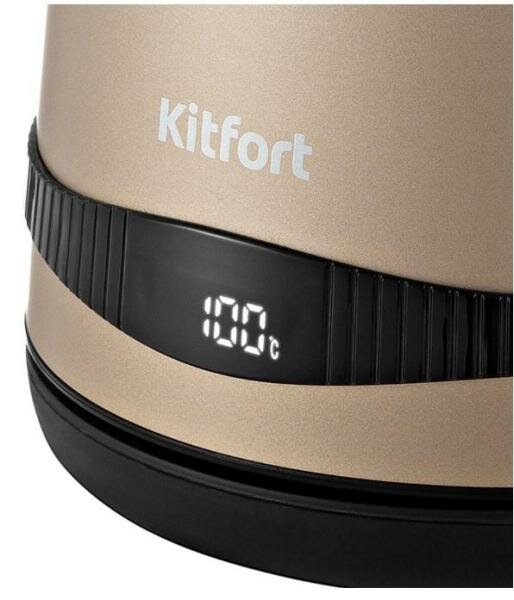 Чайник KITFORT КТ-6121-4, 1,7 л, 2200 Вт, закрытый нагревательный элемент, LED-дисплей, терморегулятор, сталь, бежевый
