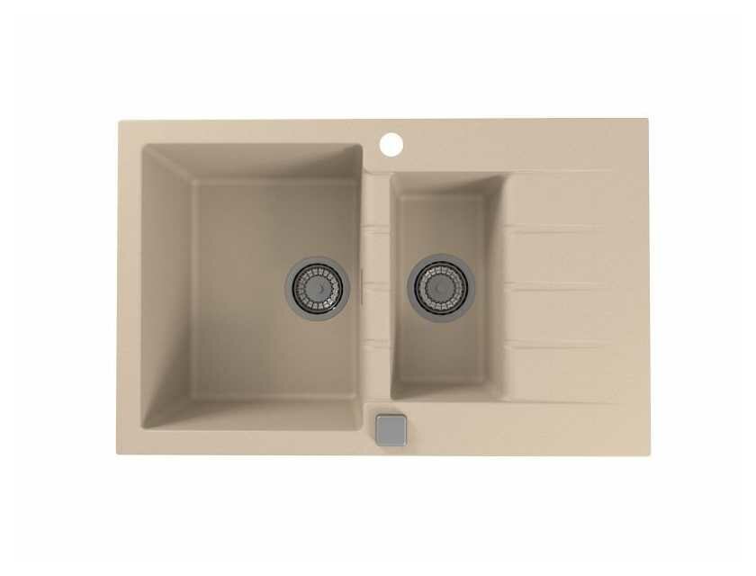 Каменная мойка для кухни с двумя чашами и крылом ALVEUS GRANITAL CADIT 70 BEIGE - G55 790 X 500 искусственный камень гранит с сифоном. Цвет бежевый
