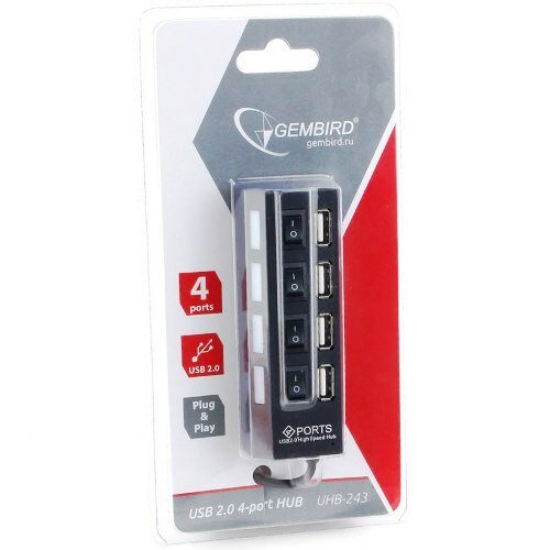 Разветвитель USB Gembird UHB-C243 AD хаб - концентратор 4 порта USB2.0 выключатели - информация: