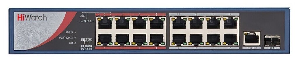 10 цен на Коммутатор Hikvision HiWatch DS-S1816P(B) 16x100Mb 1G 1SFP 16PoE 135W неуправляемый