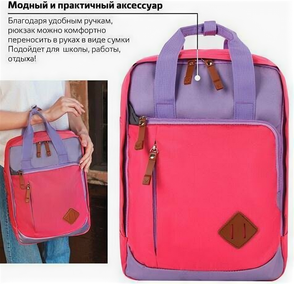 Рюкзак BRAUBERG FRIENDLY молодежный, розово-сиреневый, 37х26х13 см, 270092, 270092 1 731 ₽