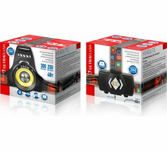 Аккумуляторный налобный фонарь Ultraflash E1335 3,7В, черный, 2LED 13905 15954423 информация: