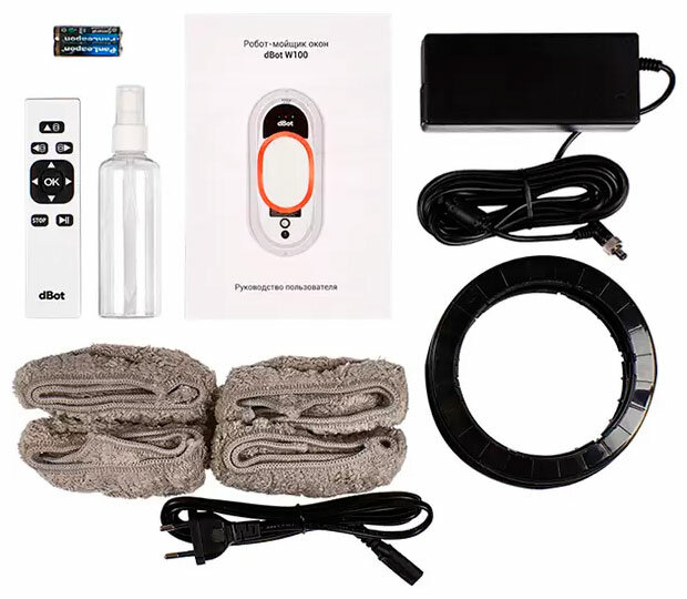Робот-мойщик окон, с распылителем, страховочный шнур 4 м, пульт ДУ, 90 Вт, 10 сменных тряпок
