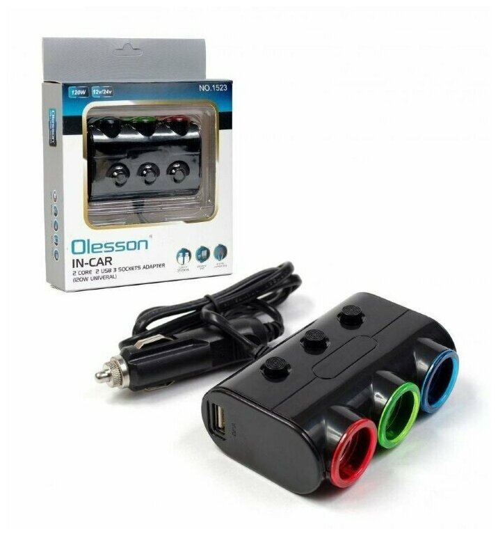 Разветвитель авто Olesson NO.1523 (2USB/3гн.с подсветкой) информация: