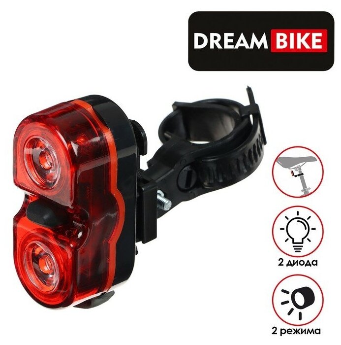 Фонарь велосипедный задний Dream Bike, JY-528-1, 2 диода, 2 режима 7305384