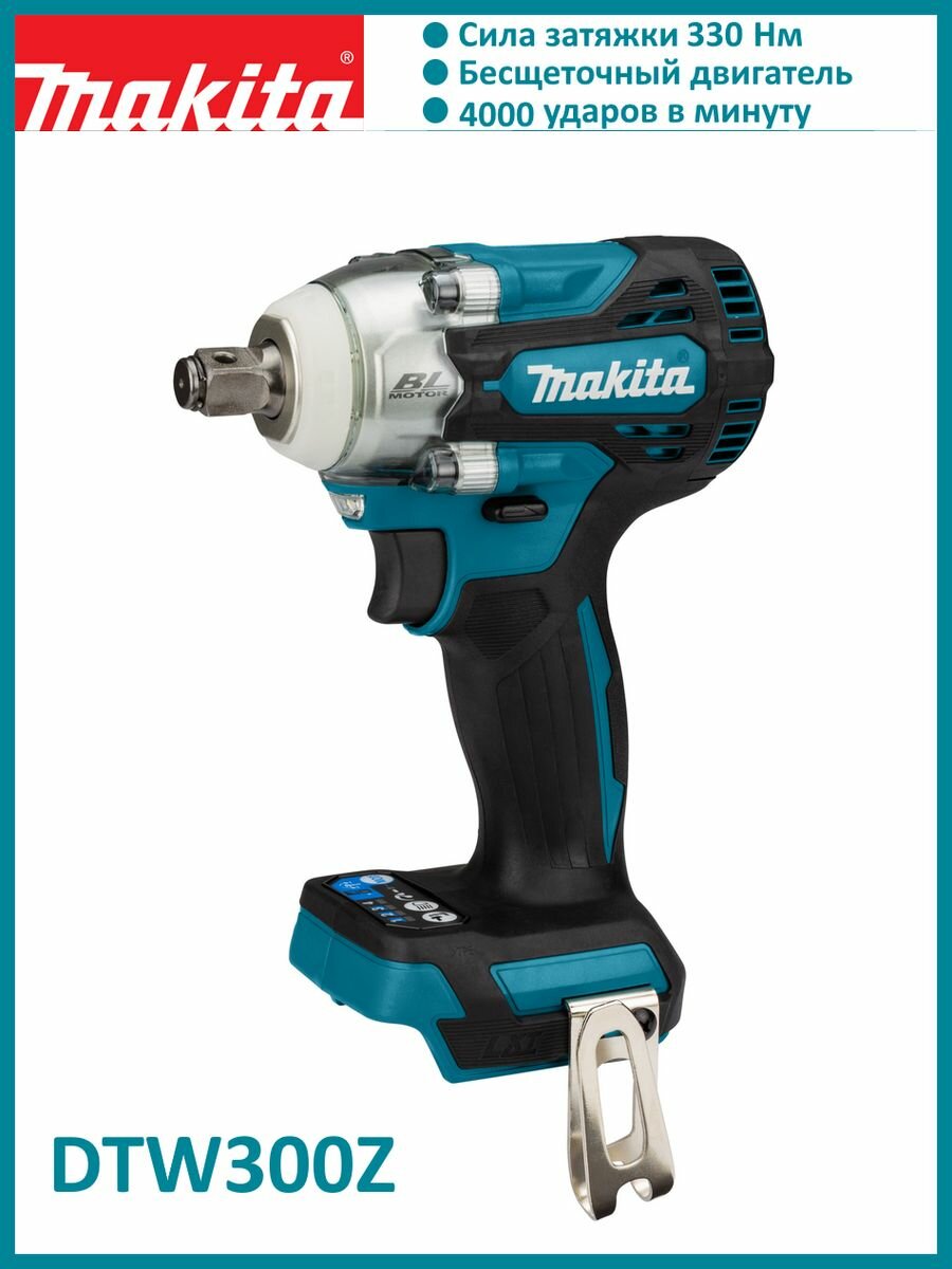 Отзывы на Гайковерт ак(уд) б\щ DTW300Z Makita,18В,Li-ion,0-4000\0-3400\0-2600\0-1800у\м,330Нм,кв 1\2",1.5кг,М1