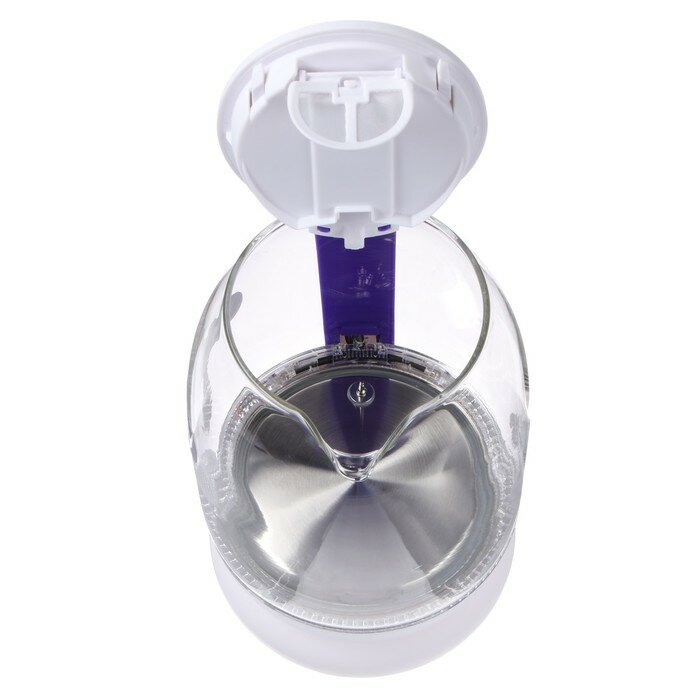 Чайник KITFORT КТ-6140-1, 1,7 л, 2200 Вт, закрытый нагревательный элемент, терморегулятор, стекло, белый/фиолетовый, 456006 3 136 ₽