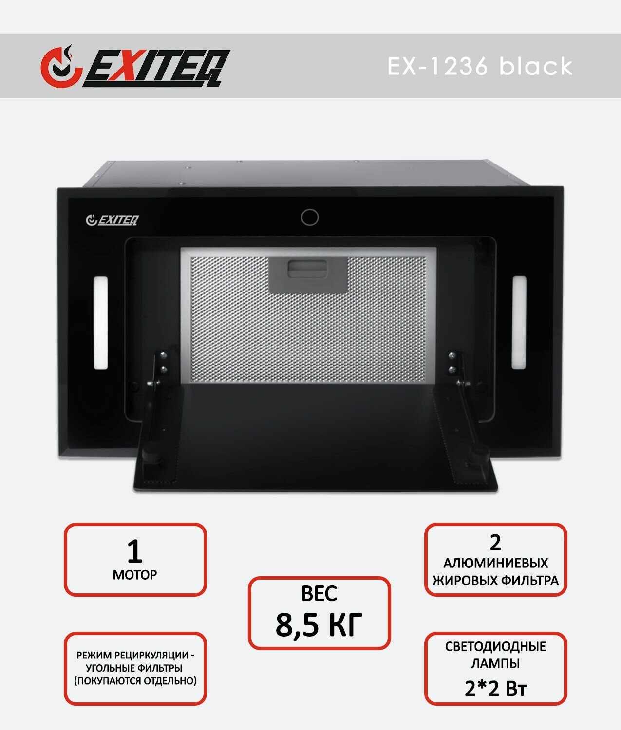 Встраиваемая вытяжка EXITEQ EX-1236, черный