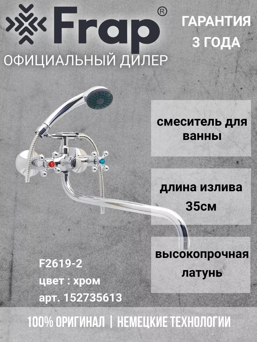 Отзывы на Смеситель для ванны и умывальника 1/2 кер F2619-2 FRAP с картр перекл крест