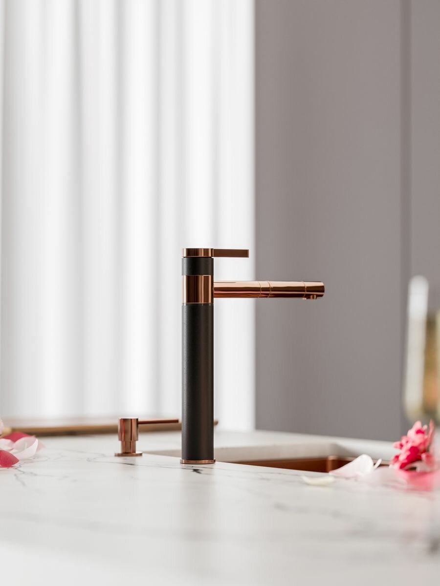 Отзывы на Смеситель для кухни с PVD покрытием и высоким поворотным изливом, черный, медный ALVEUS ZINA MONARCH COPPER/медь