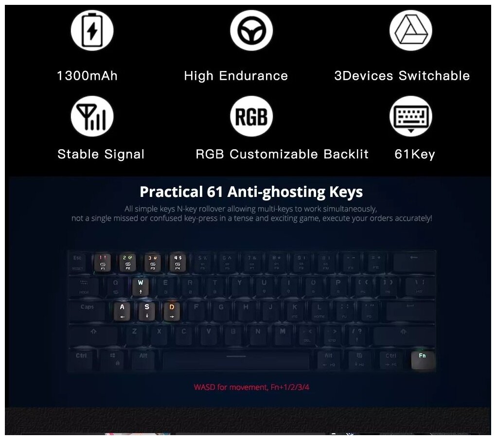 Клавиатура Motospeed CK62 Red Switch (Розовый) информация: