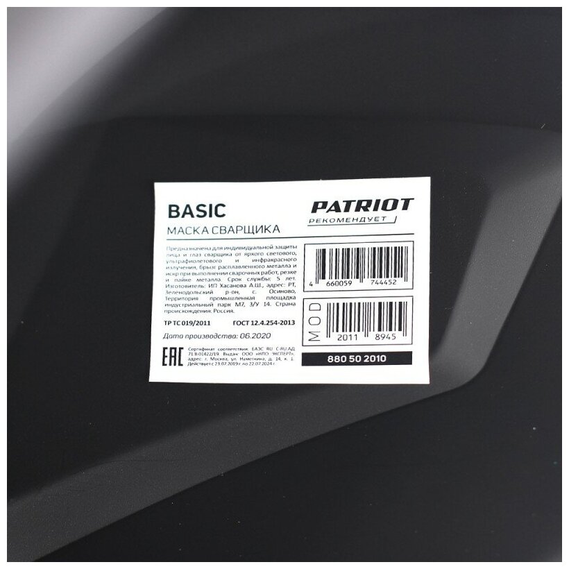 Маска сварщика PATRIOT Basic / шлем для сварки информация: