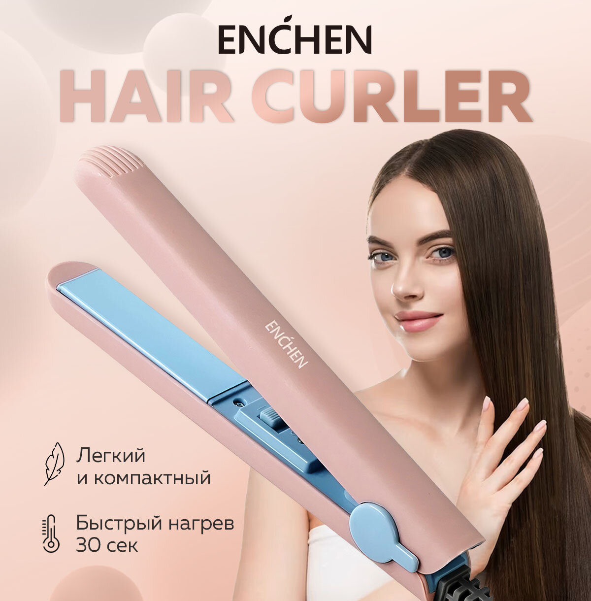 10 цен на Компактный дорожный выпрямитель для волос / Утюжок для волос / Enchen Hair Curler (Pink)