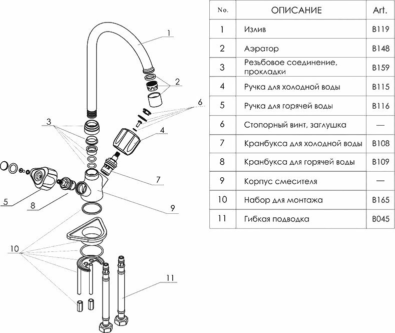 | Тип излива | поворотный |