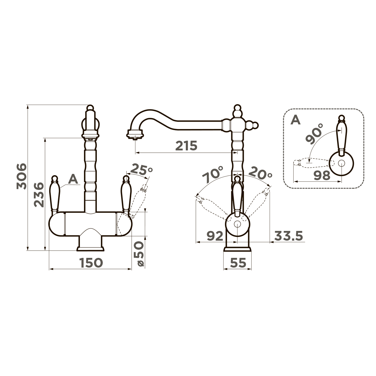 Смеситель для кухни с подключением к фильтру с питьевой водой из нержавеющей стали SUS304 Calorie CAL50116-3