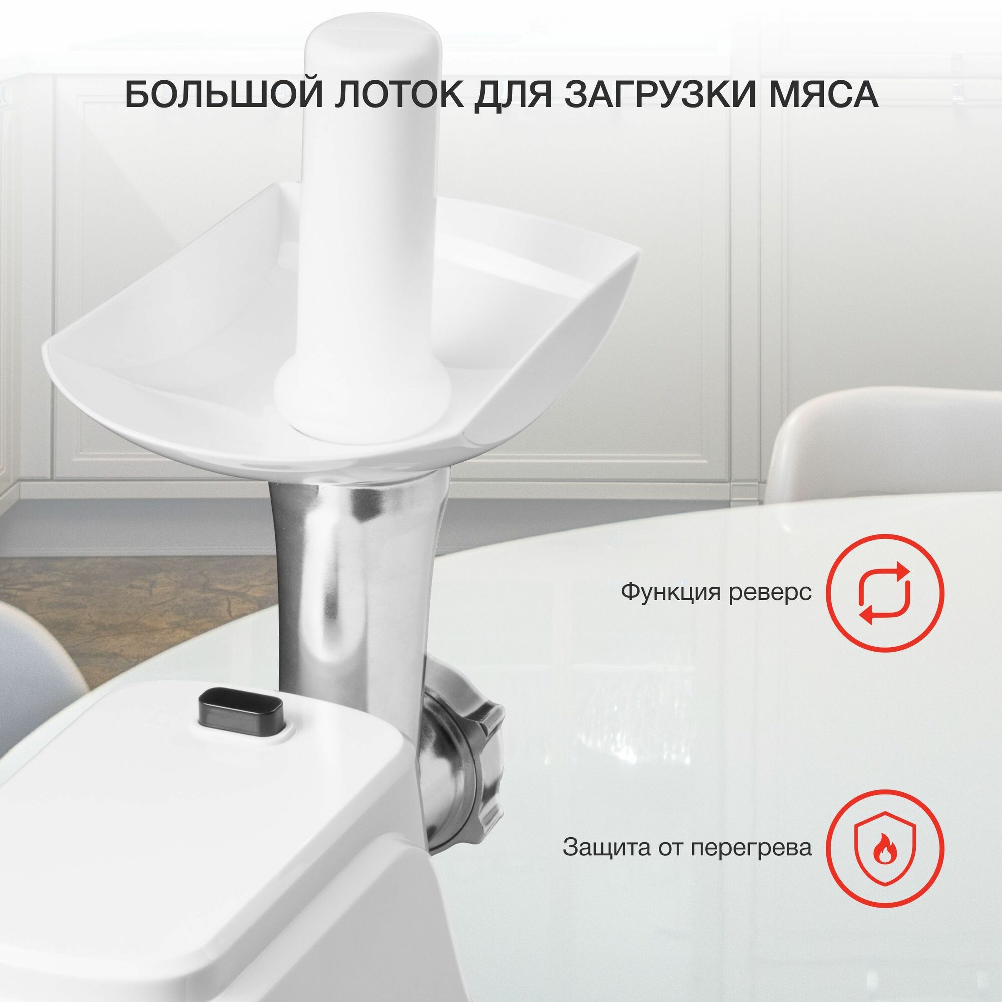 Мясорубка Аксион М321, 1500 Вт, реверс, защита двигателя, насадки для кеббе и колбас
