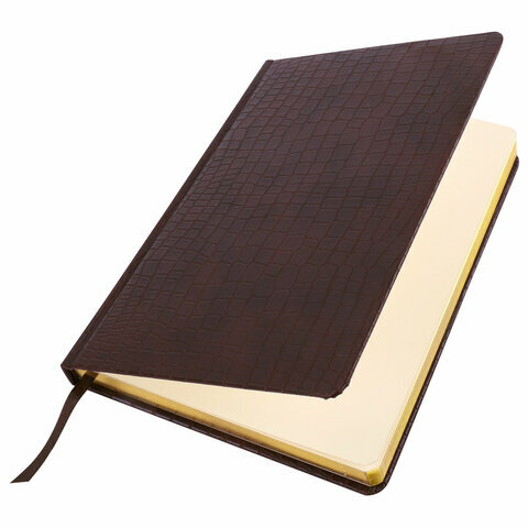 Ежедневник недатированный большой формат (175х247 мм) В5, BRAUBERG "Alligator", под матовую крокод. кожу, 160л, крем.блок, т-корич, 124969 В комплекте: 1шт.