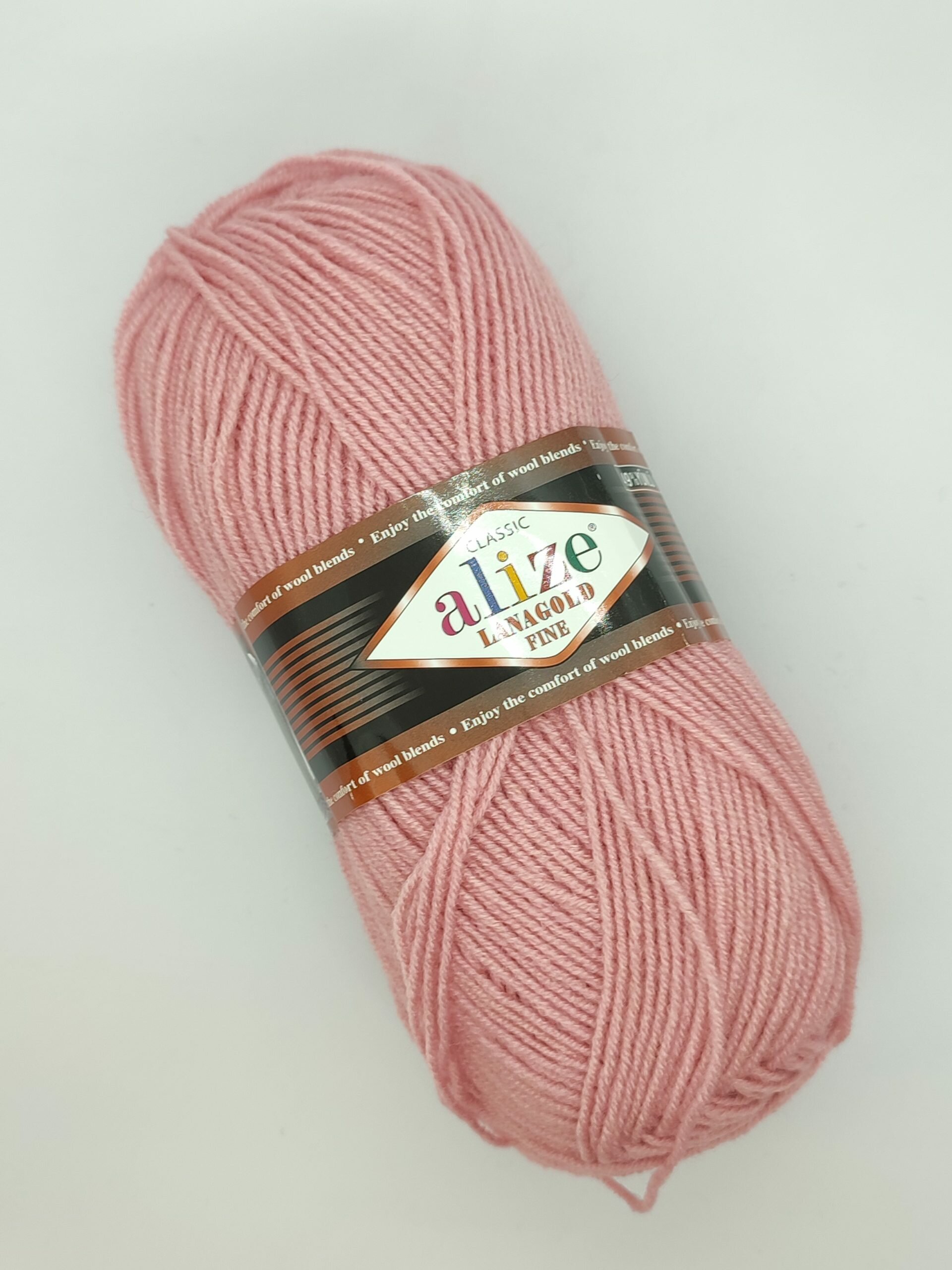 Пряжа Alize Lanagold Fine, 51% акрил / 49% шерсть, 100 гр/390 м, 1 моток, цвет 28 сухая роза