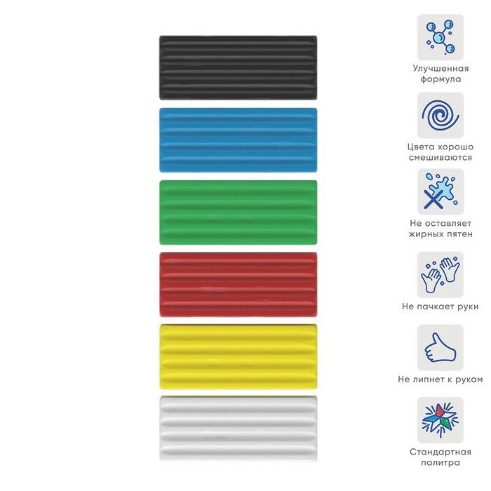 Пластилин 6 цветов, 96 г, ErichKrause Basic, в картонной упаковке информация: