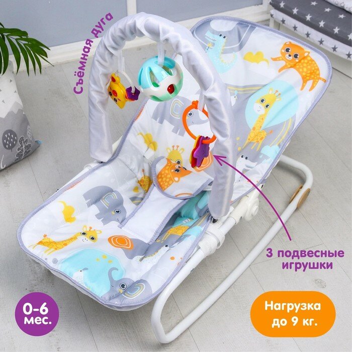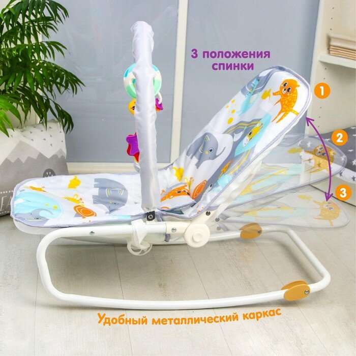 Шезлонг - качалка для новорождённых «Веселые зверята», игровая дуга, игрушки микс информация: