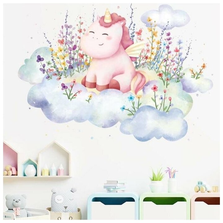 Отзывы на ПК кидс тойз ДВ Наклейка пластик интерьерная цветная "Единорог на цветущем облачке" 30х45 см