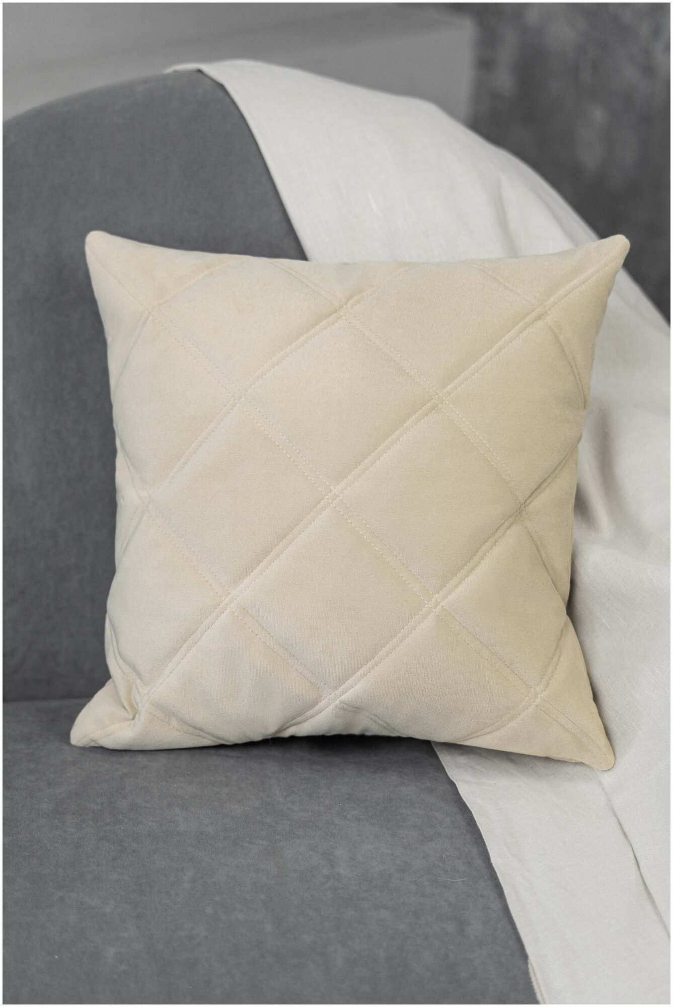 Подушка декоративная ChiedoCover со съемным чехлом из велюра на молнии, 40x40 Бежевая