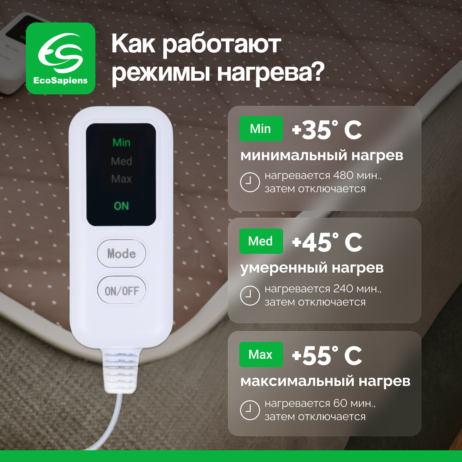 Электронаматрасник EcoSapiens Hot Topper, матрас с подогревом, наматрасник с подогревом, 160х200 см, высота 30 см