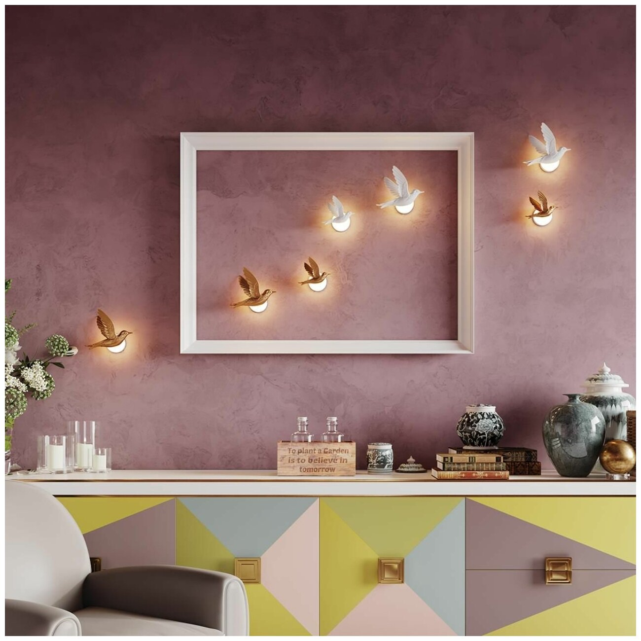Светильник настенный, бра настенные, 6 Вт, 43 см, трехцветный меняющийся свет