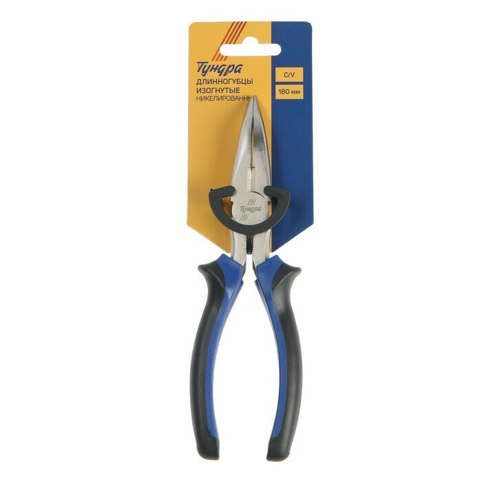 10 цен на Длинногубцы изогнутые тундра, CrV, никелированные, двухкомпонентные рукоятки, 180 мм./В упаковке шт: 1