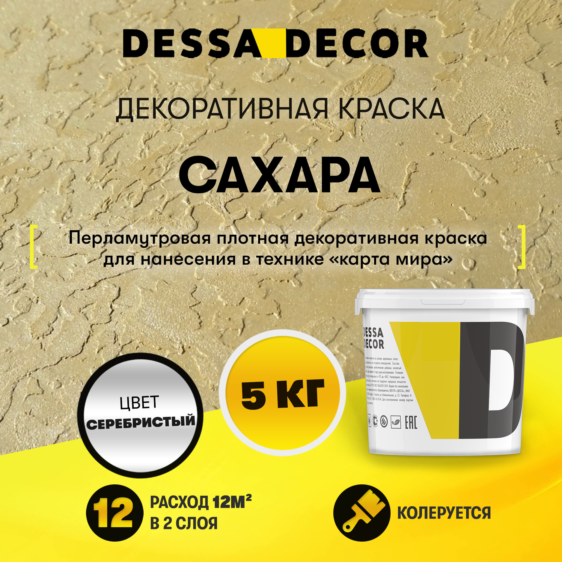 Декоративная краска для стен DESSA DECOR Сахара 5 кг, декоративная штукатурка для стен для имитации песчаной поверхности со стеклянными шариками информация: