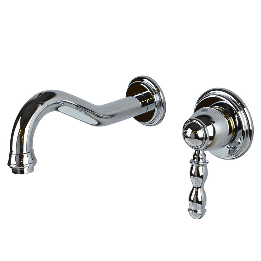 Смеситель на раковину настенный Эверест B46-350 с круглым поворотным изливом, кран-буксы 1/2", хром