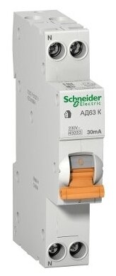 Выключатель автоматический дифференциального тока 2п (1P+N) C 25А 30мА тип AC 4.5кА К АД63 Домовой SchE, SCHNEIDER ELECTRIC 12524 (1 шт.)